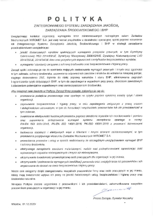 “WIROMET” SA aims to ensure the highest quality and competitiveness of its products and services, while minimising the negative impact on the environment and maintaining safe and hygienic working conditions.