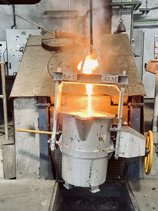 wytapiane jest z najwyższej jakości złomu maszynowego oraz atestowanej surówki odlewniczej ze stałym monitorowaniem składu chemicznego przed spustem ciekłego metalu, a także – przed zalaniem form.